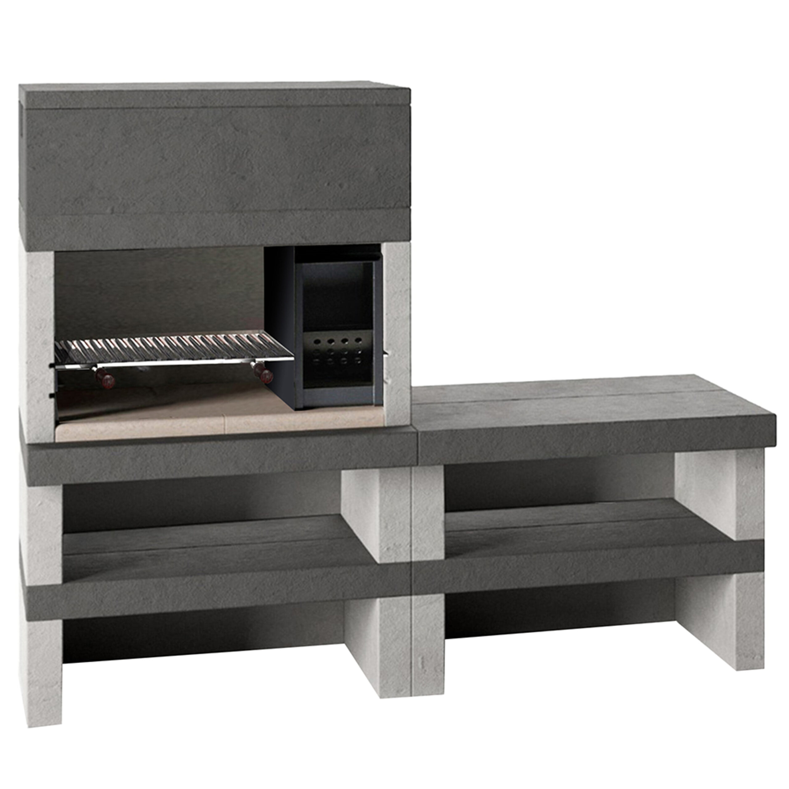Barbecue à Bois et Charbon Edilmark Kubo‑1 en Maçonnerie – Brûleur à Droite