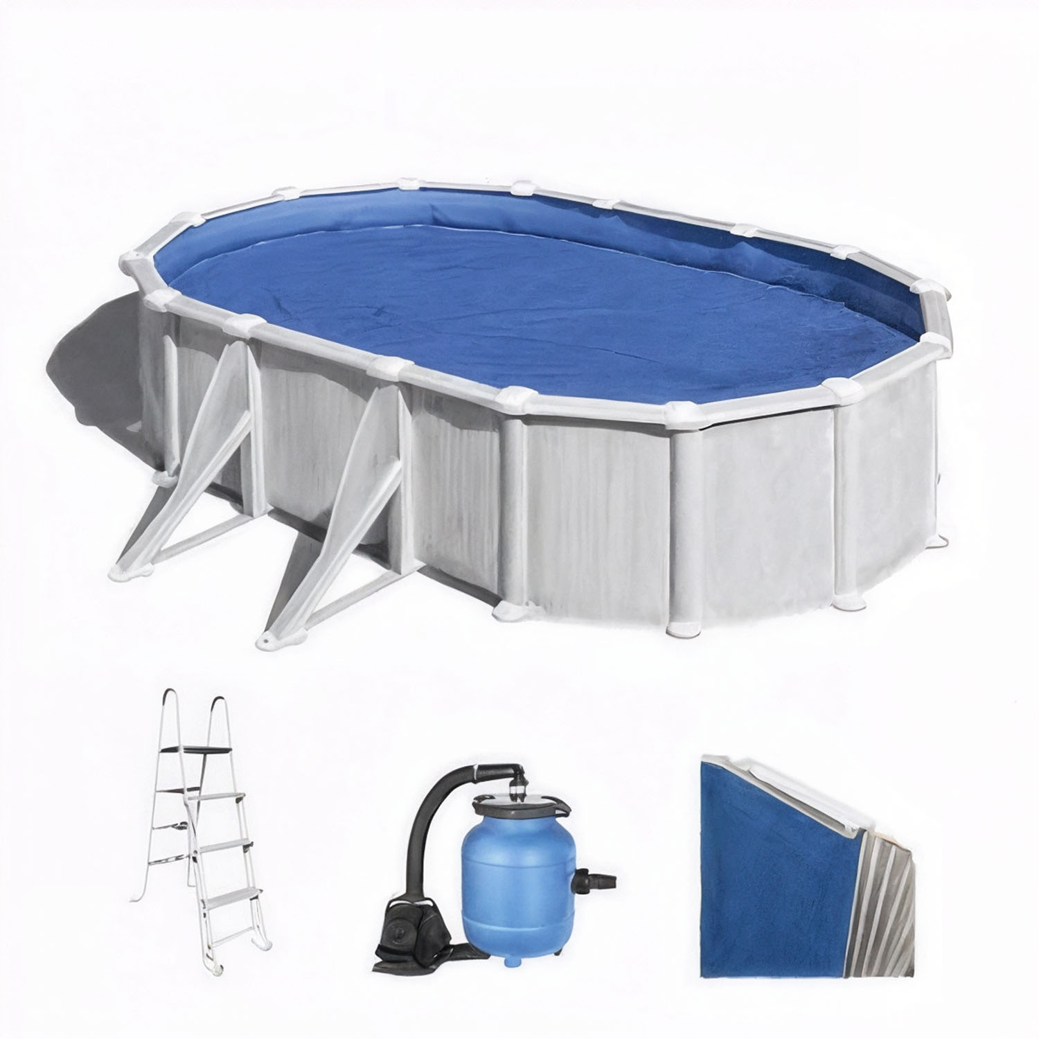 Gre Atlantis Ovale 610x375x120cm – Piscine hors sol en acier – Filtre Aqualoon