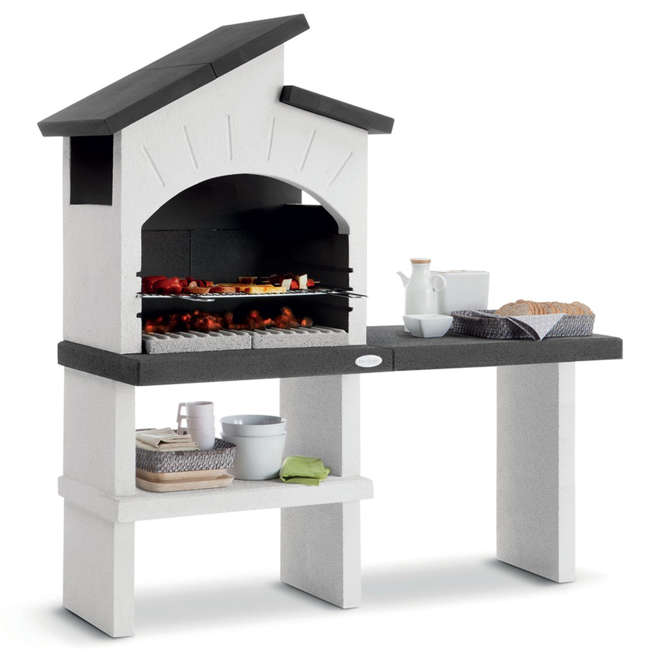 Le Palazzetti Ravello est fabriqué en maçonnerie, un matériau solide et durable qui permet de supporter les températures élevées générées par le bois et le charbon. Il dispose d’une grille en inox réglable en hauteur, permettant d’adapter la cuisson selon vos préférences. La surface de cuisson est spacieuse, idéale pour préparer de grandes quantités de nourriture. Le barbecue est également équipé d’un bac à cendres amovible, facilitant ainsi l’entretien après chaque utilisation. Son design moderne et fonctionnel s’intègre parfaitement à tous types d’aménagements extérieurs.