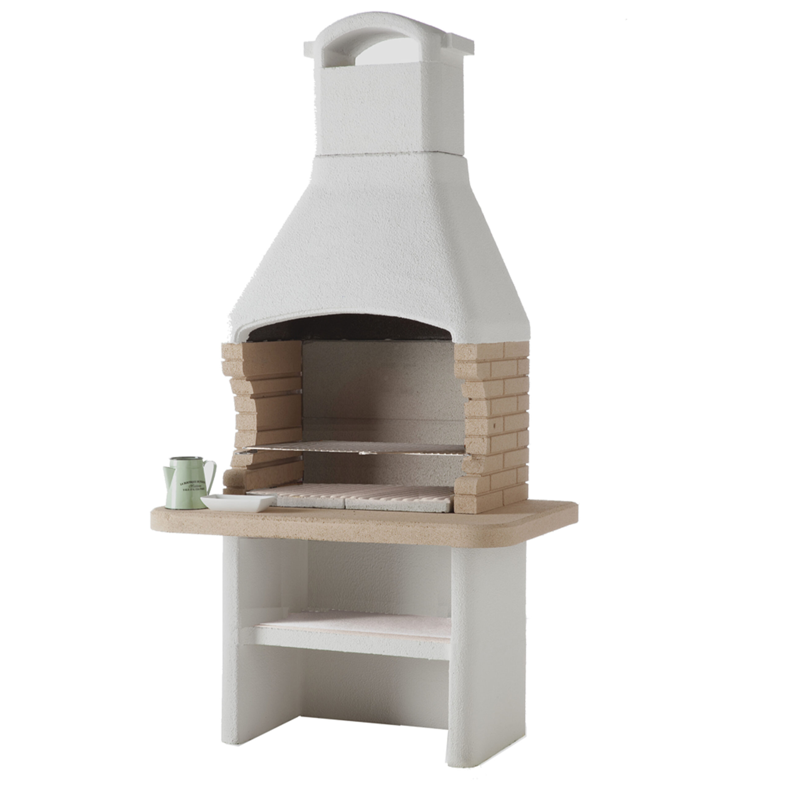 Le modèle Tenerife 2 est équipé d’une grille en acier inoxydable réglable en hauteur, permettant d’adapter la cuisson selon les besoins. Sa structure en béton réfractaire assure une excellente résistance à la chaleur et aux intempéries. Des étagères latérales et une tablette inférieure offrent des espaces de rangement pratiques pour le combustible et les accessoires.